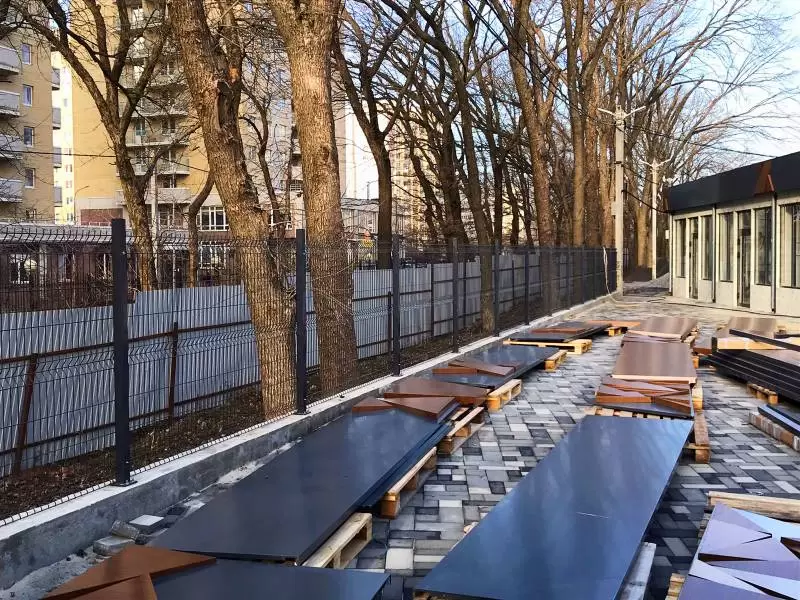 После происходит монтаж опор забора, которые могут быть различной конструкции в зависимости от требований заказчика. Затем секции устанавливаются на опоры и закрепляются с помощью крепежных элементов.